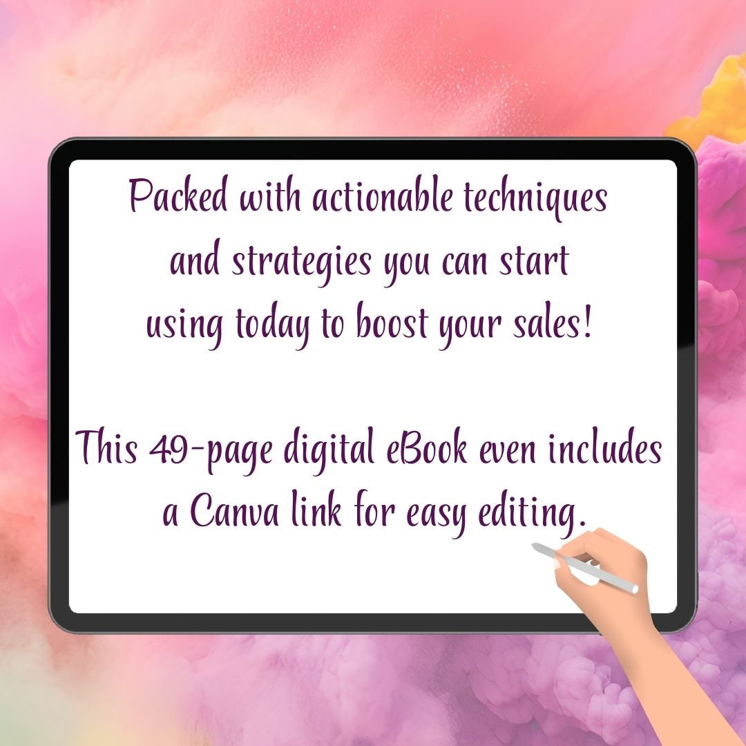 âś… Actionable techniques and strategies you can start using today to boost your sales! This 49-page digital eBook even includes a Canva link for easy editing.